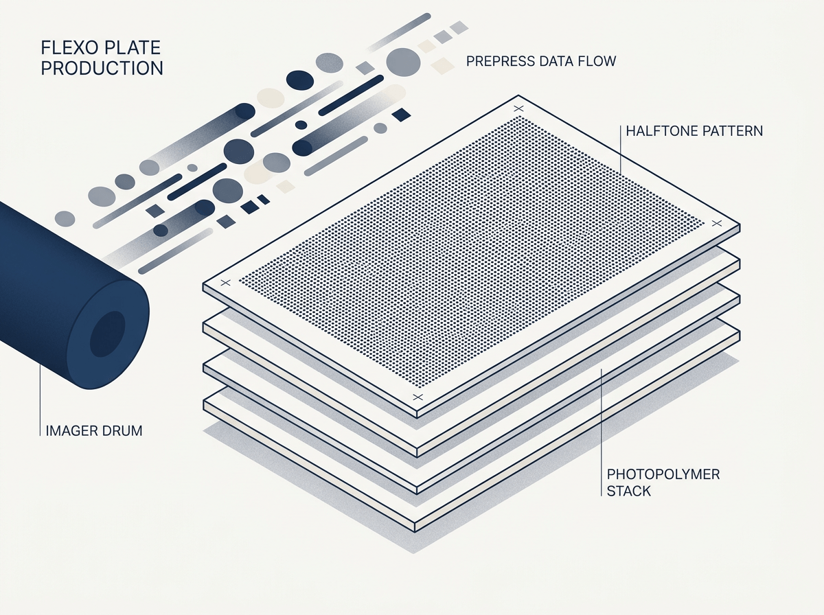 One platform for every step — artwork intake, prepress and screening, plate imaging and QC, delivery and invoicing by plate area. Purpose-built for flexographic trade shops.